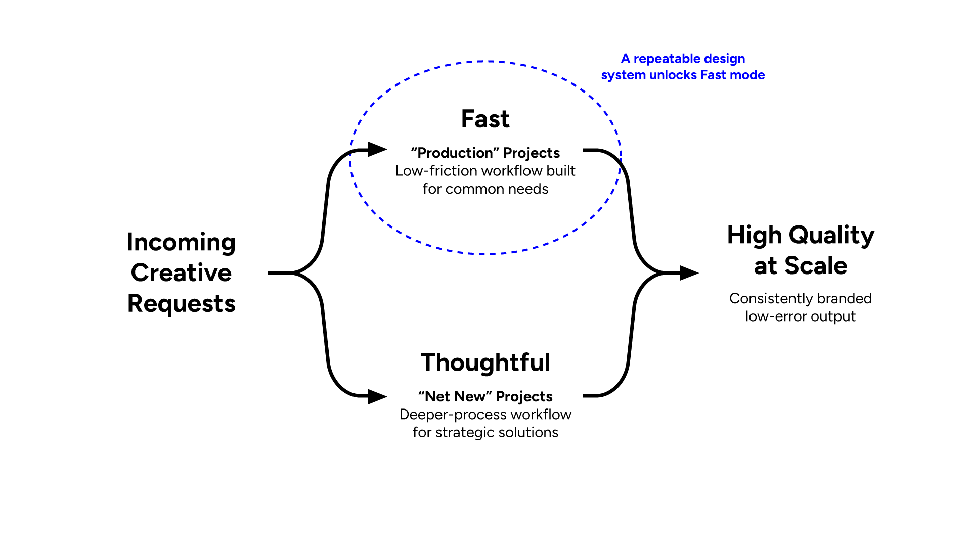 Templated evergreen needs while creating deliberate collaboration models for net-new thinking.