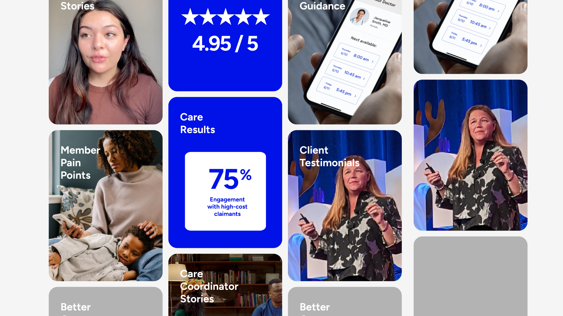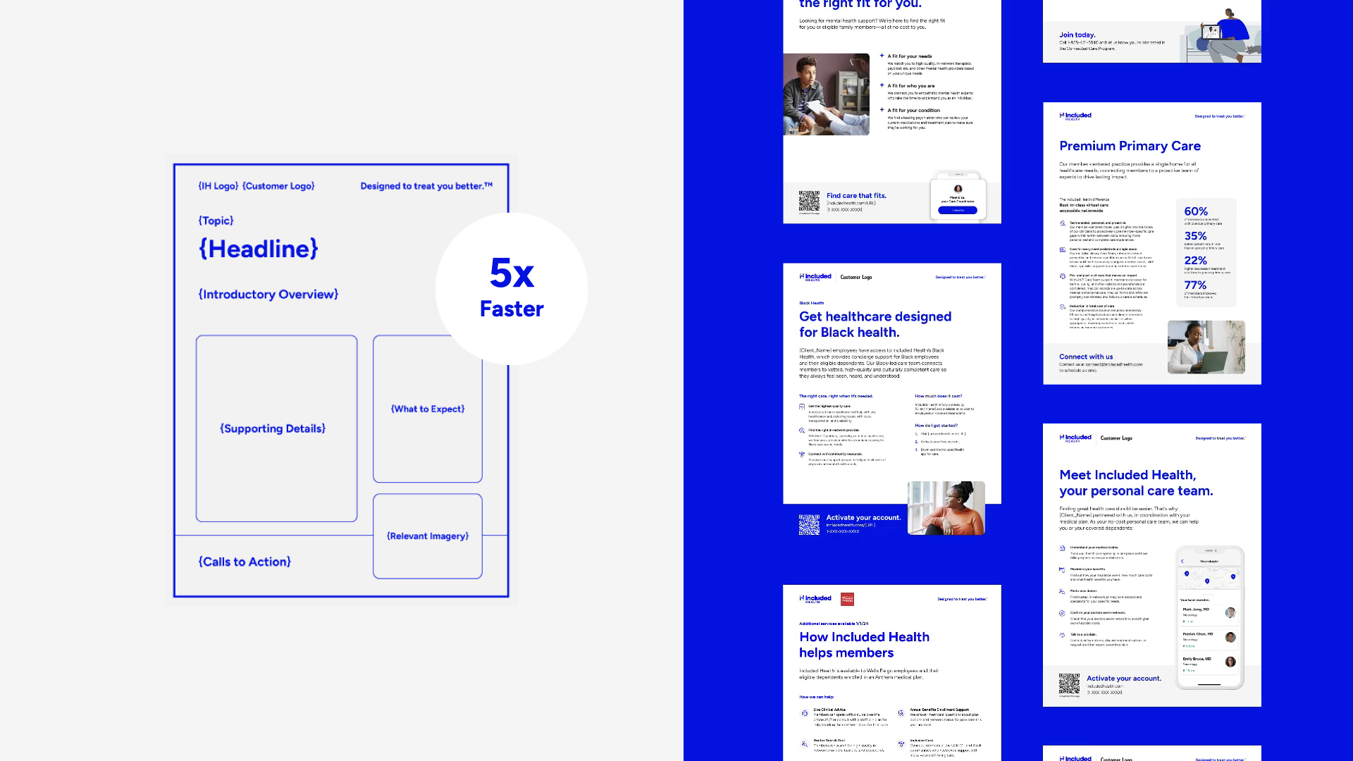 Included Health had recently merged three companies into a single organization. The brand system was minimal, generic, and inconsistent. The creative team was overwhelmed, morale was low, and work arrived via unprioritized intake from across the company. At the same time, Included Health served two audiences: enterprise buyers and millions of end users who relied on clear, trustworthy guidance to access care.